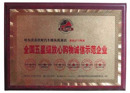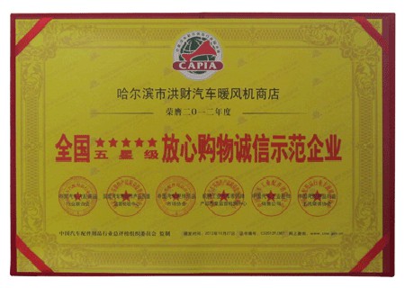 证书编号: C22012PJ367 证书名称: 全国五星级放心购物诚信示范企业 发证机构: 中国汽车配件用品行业总评榜组织委员会 生效日期: 2012年10月27日 截止日期: 2013年10月27日 认证简介: 哈尔滨市洪财汽车暖风机商店在2012年度的汽配会上荣获了“全国五星级放心购物诚信示范企业”,本次评选是由中国汽车汽配用品行业联合会、国家汽车零部件产品质量监督检验中心、中国汽车配件用品市场协会、机械工业汽车零部件产品质量监督检测中心、中国汽车工业配件销售公司、中国汽配用品行业主流媒体协会颁发。